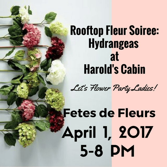 We are hosting our 1st floral arranging workshop on Saturday, April 1st at Harolds Cabin in Charleston, SC. The flower arranging class will involve beautiful hydrangeas and of course other lovely flowers. Think hydrangeas, rooftop beauty and hopefully good weather with 20 amazing other women to meet and mingle with.