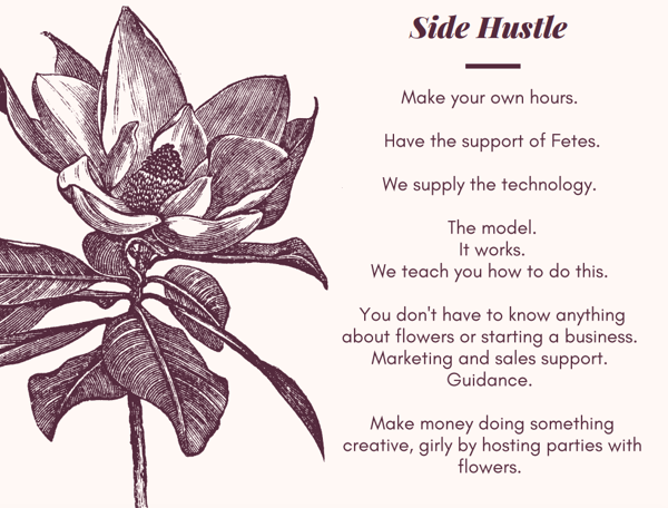There are different models for our side hustle program that you should be aware of. You can fill out this form on this page to learn more about how the details of the flower crown party side hustle program works.