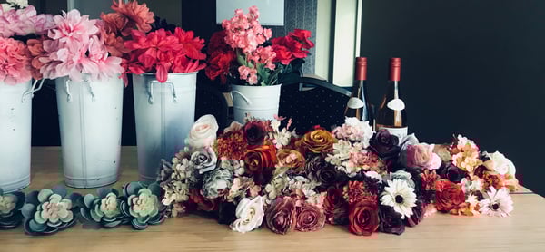 The group of ladies wanted to do fall flower crowns with silk flowers. They had requested succulents, and darker maroon and darker pink colors. So we went to work and got together a beautiful selection of fall florals for their Silk Flower Crown Workshop.